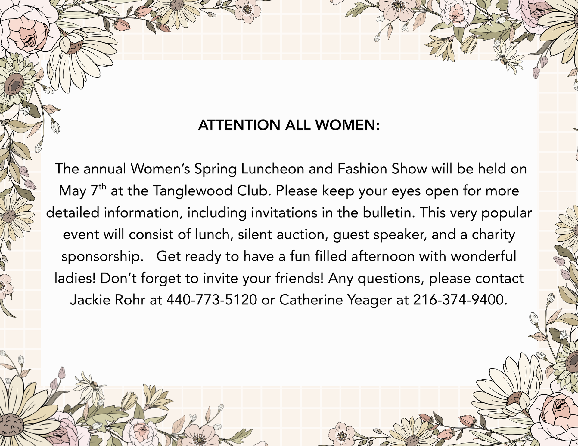 All proceeds go to SJA Youth Group and Women’s Guild.